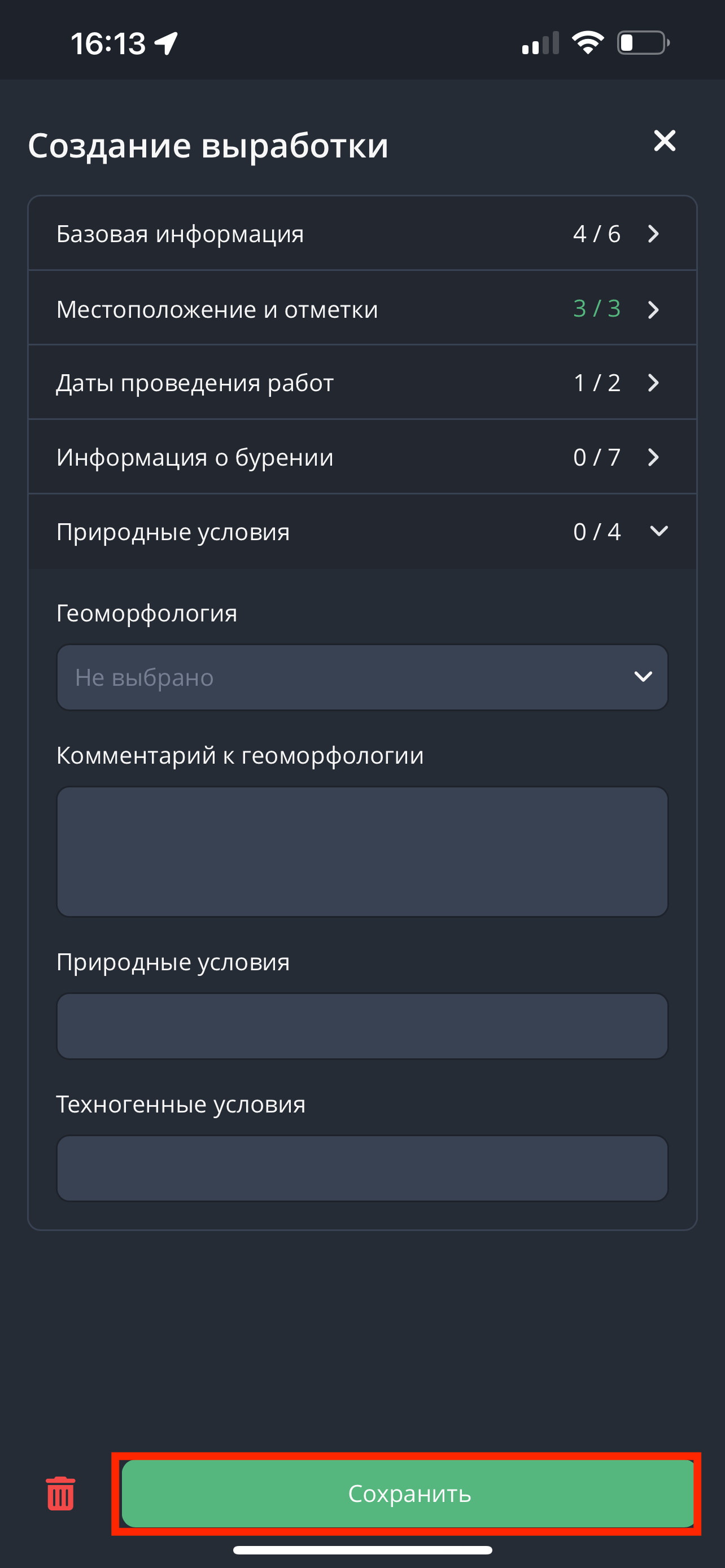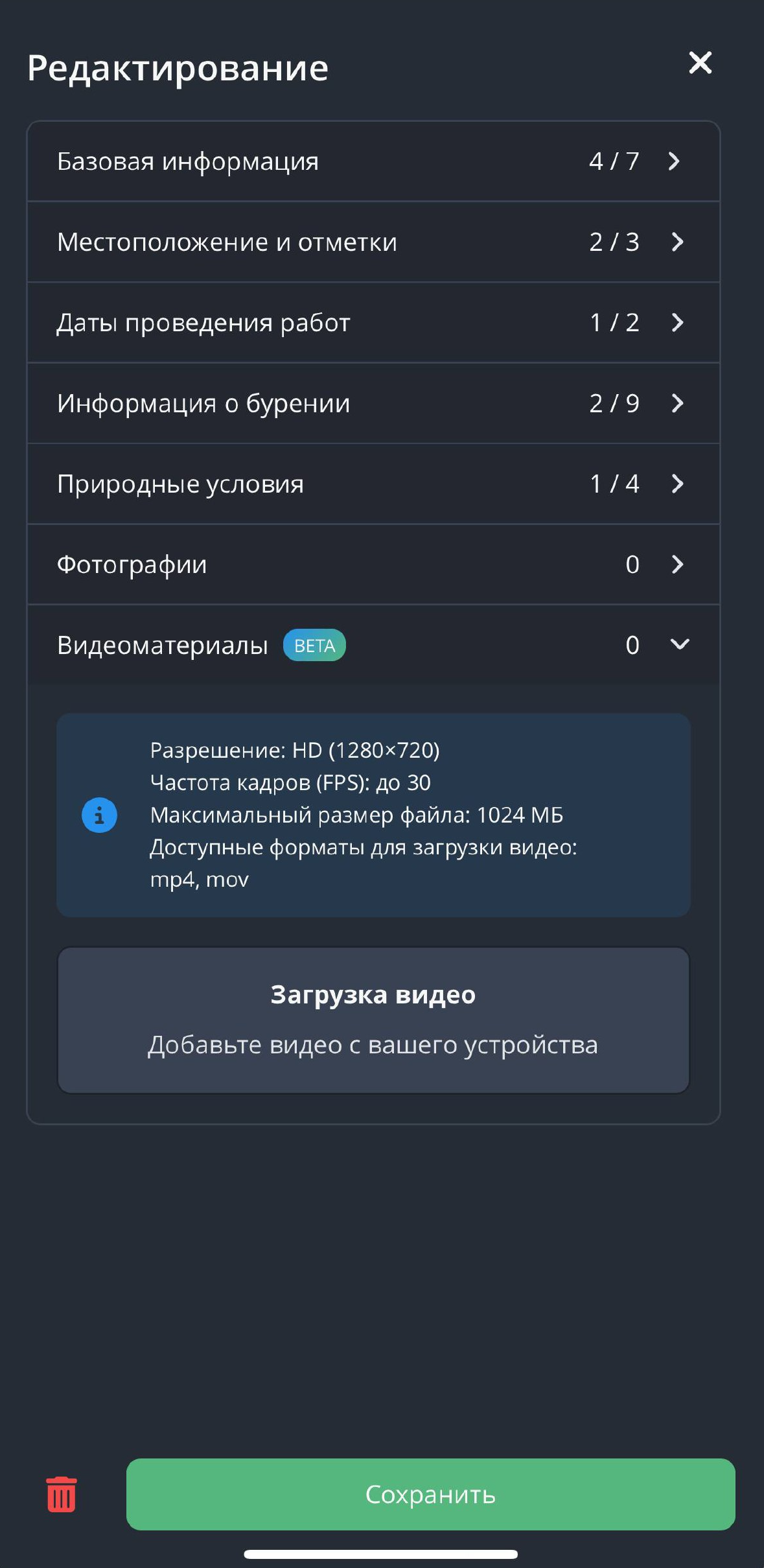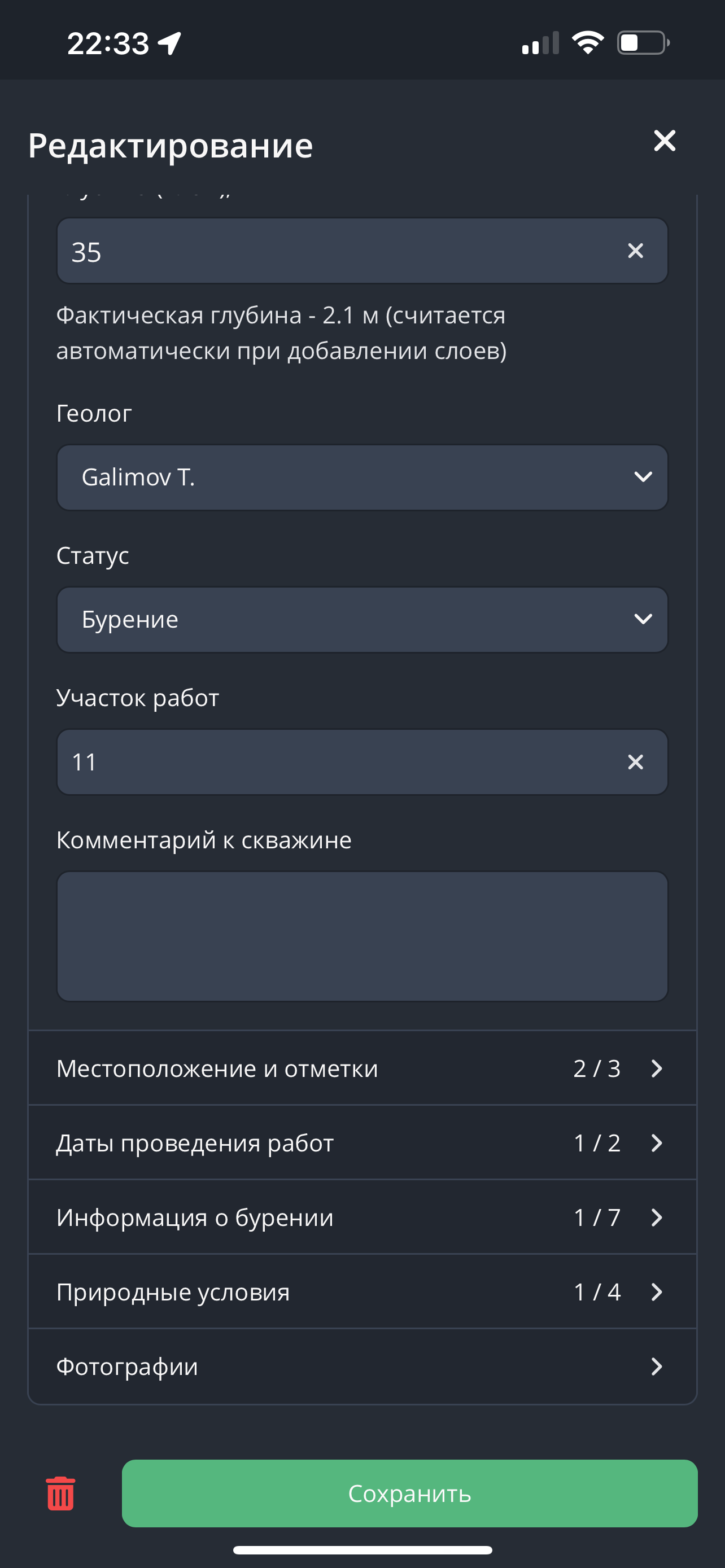 - На любом этапе можно сохранить текущие наработки и вернуться к ним позднее редактирования информации о скважине.