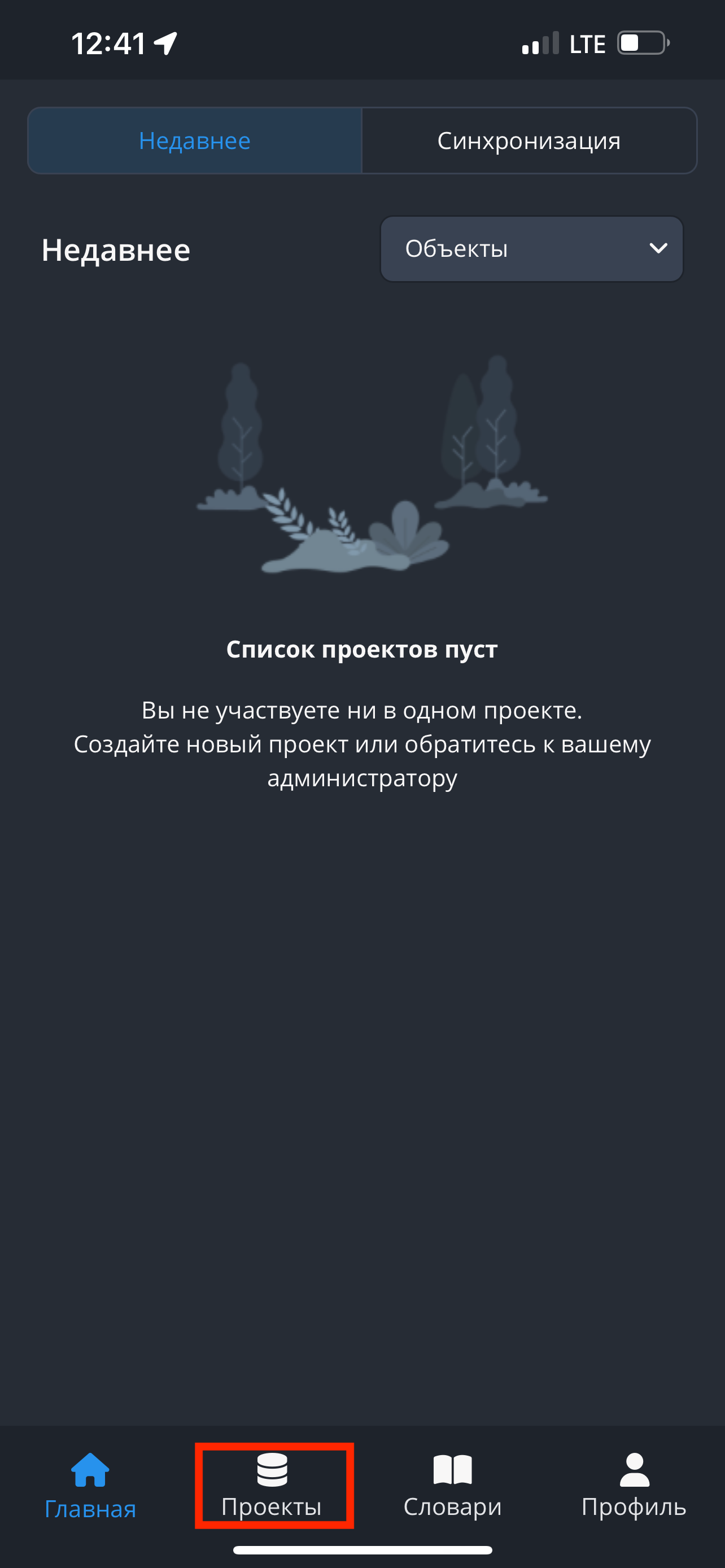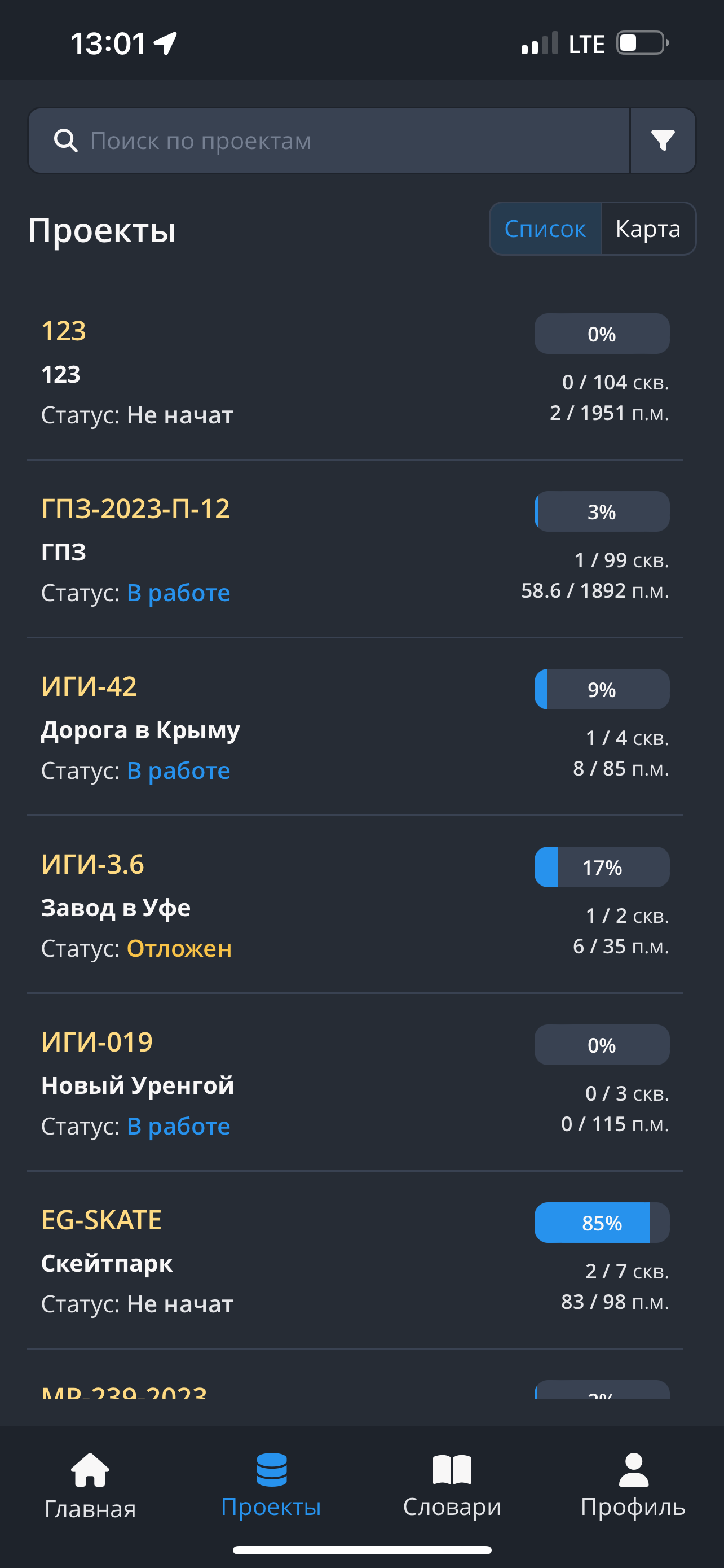 - Открываем в приложении модуль "Проекты". Выбираем интересующий нас проект, нажимаем на него.