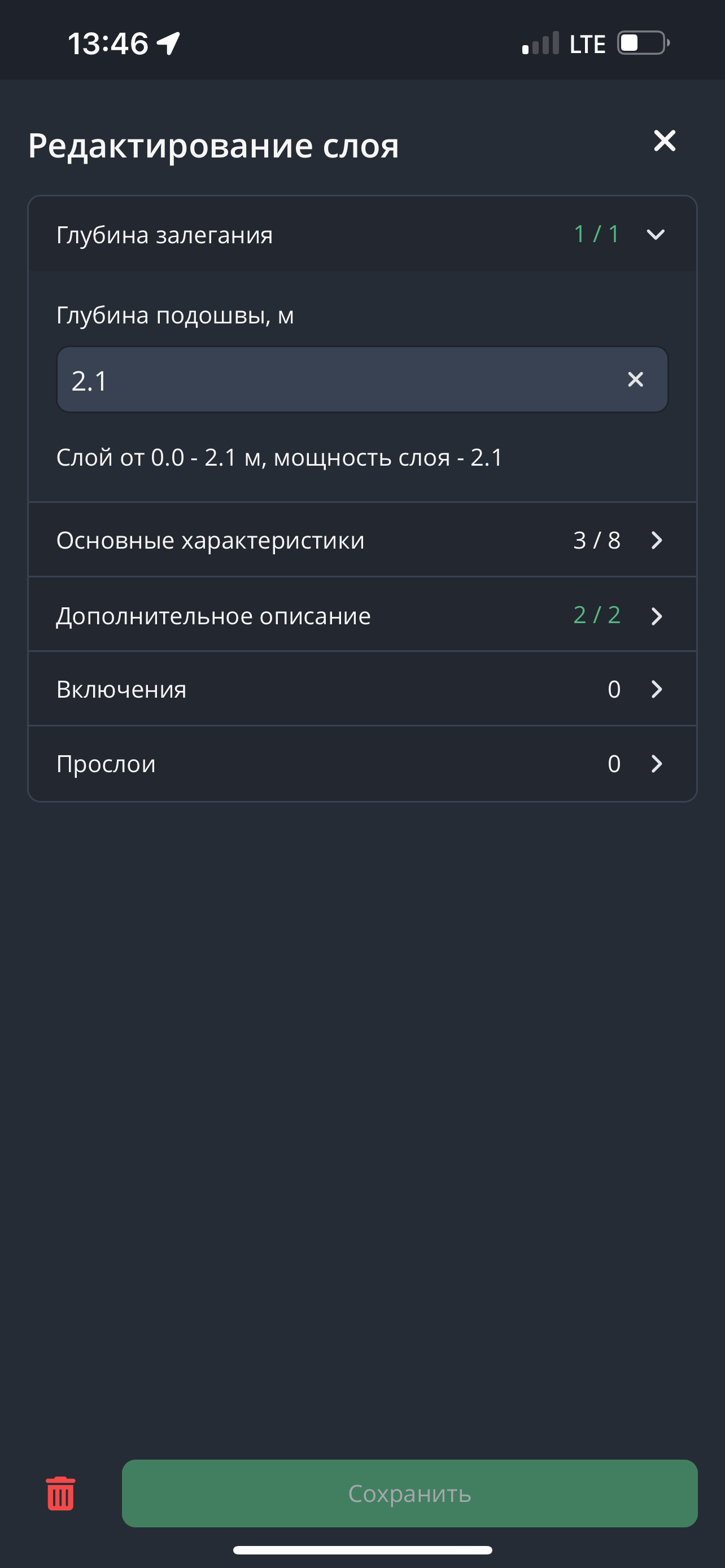 - В гиде описания слоя есть возможность добавлять, редактировать или удалять включения и прослои.
