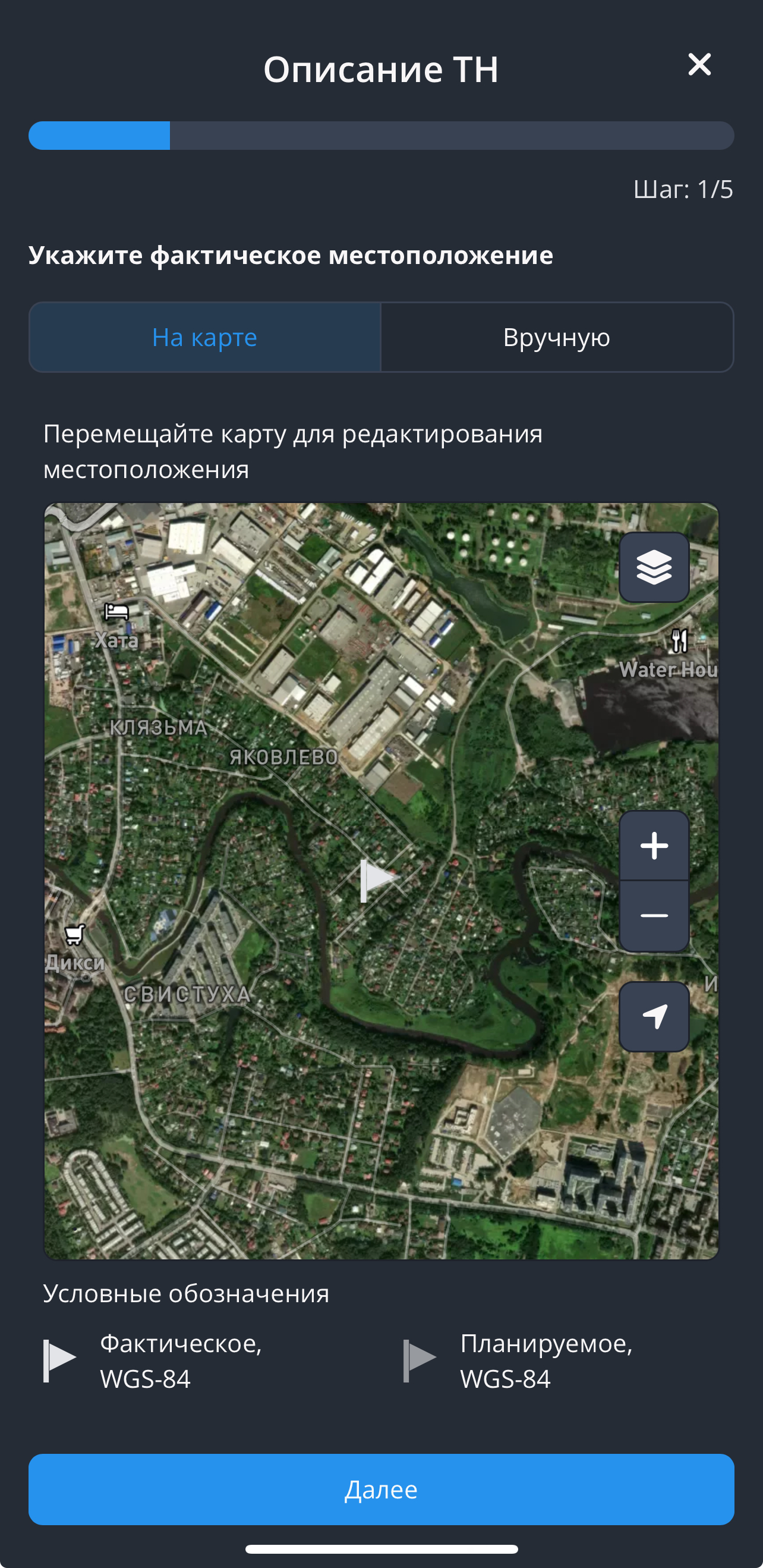 На данном этапе требуется указать фактическое местоположение точки наблюдения и нажать кнопку «Далее».