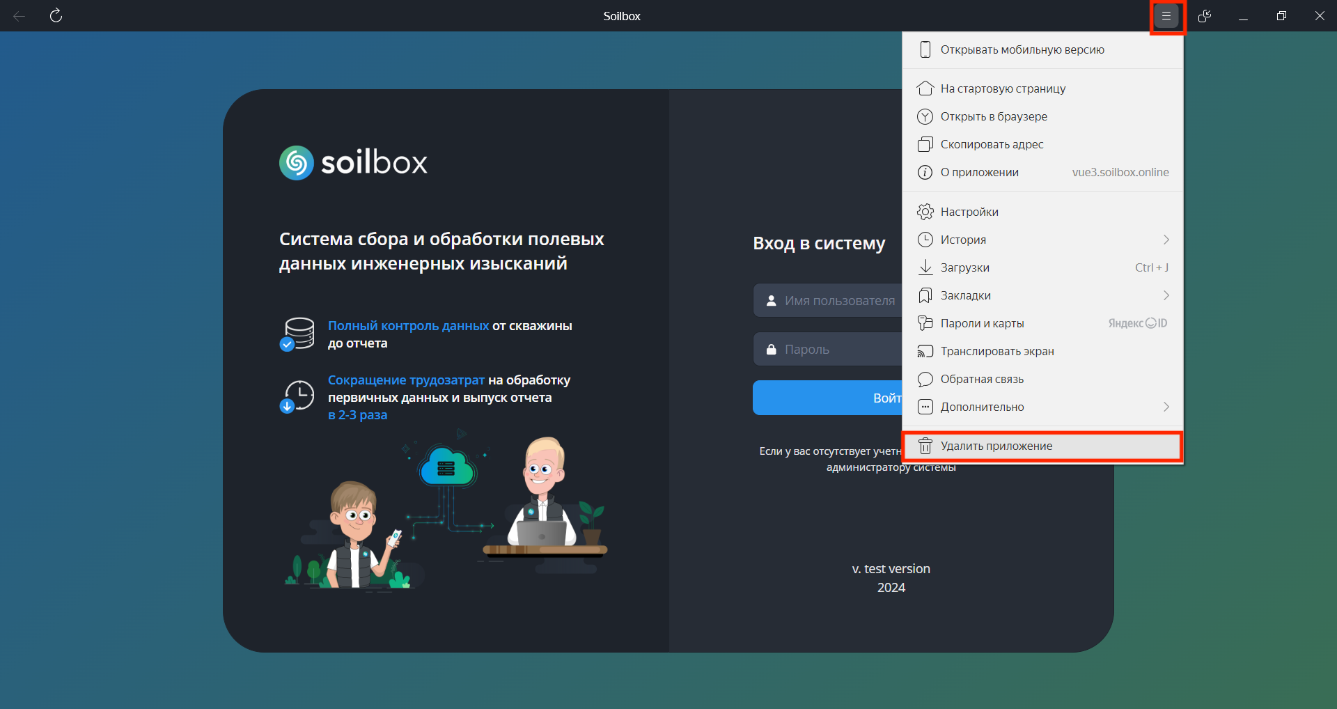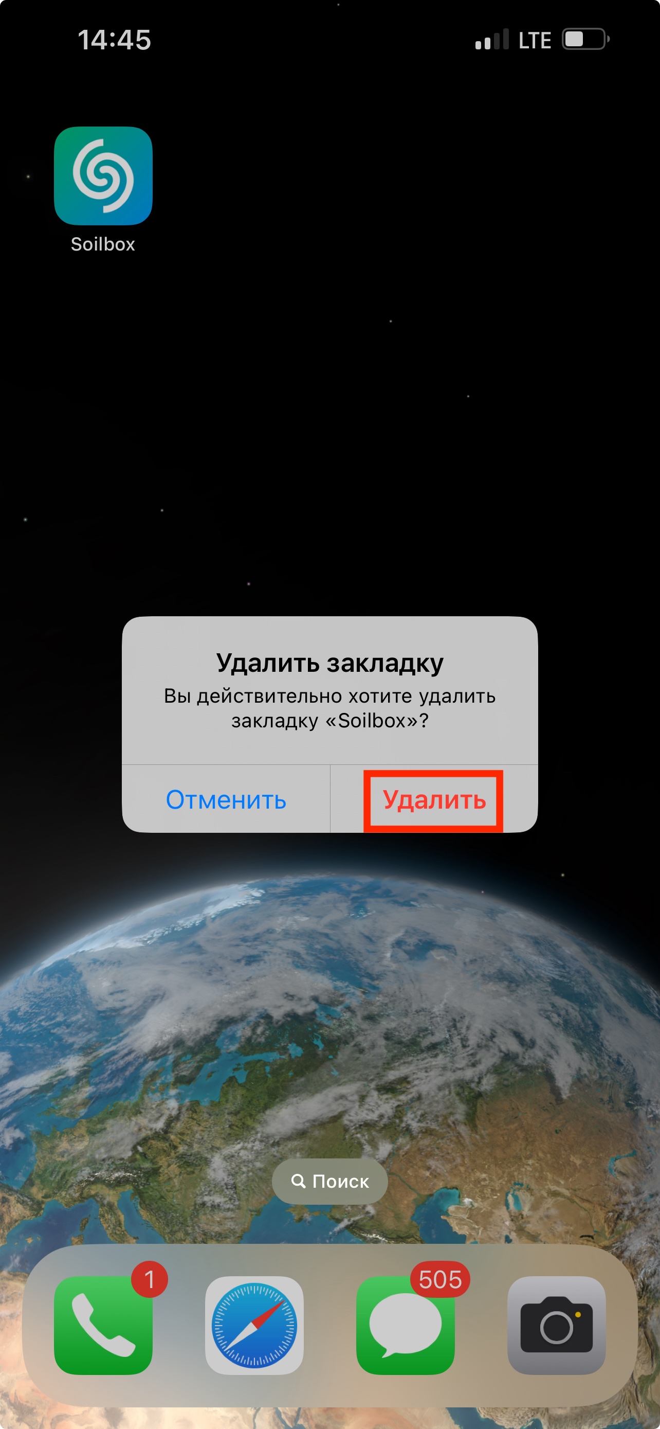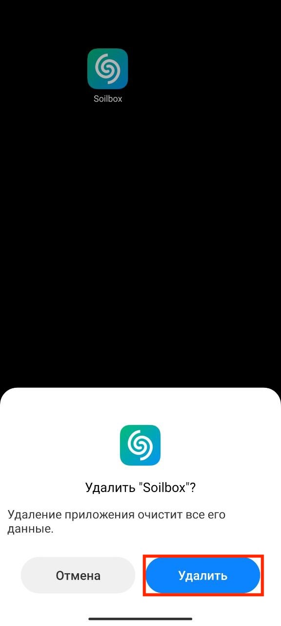 - Далее нажмите на кнопку "Удалить приложение "Soilbox"".