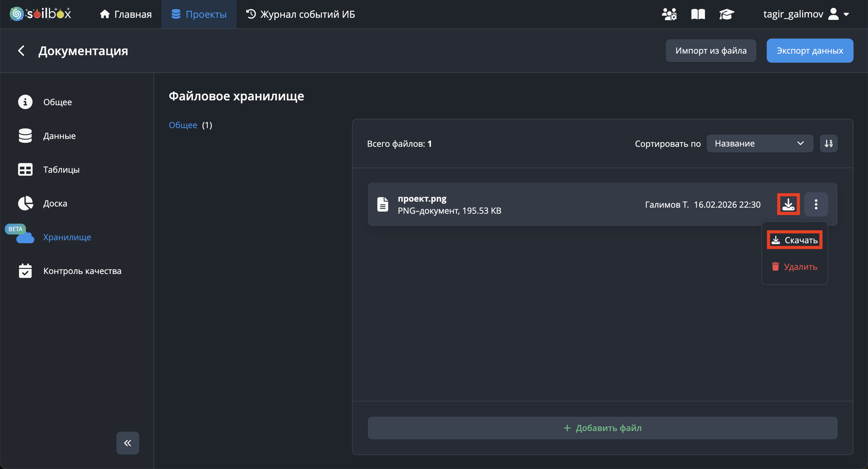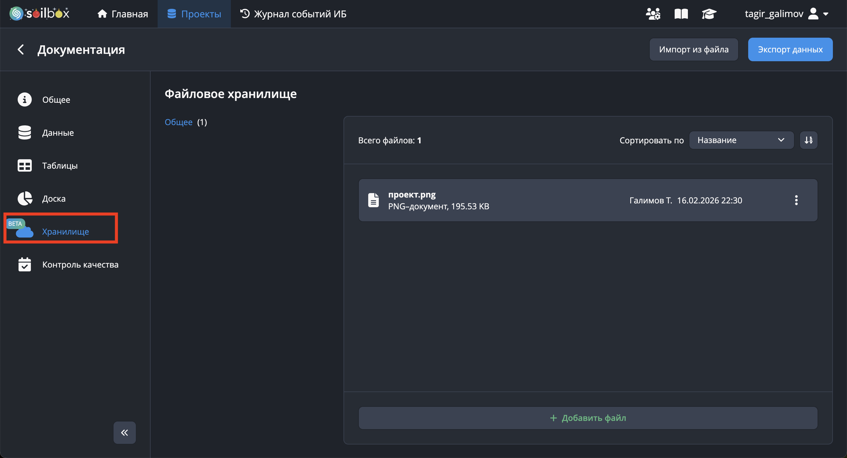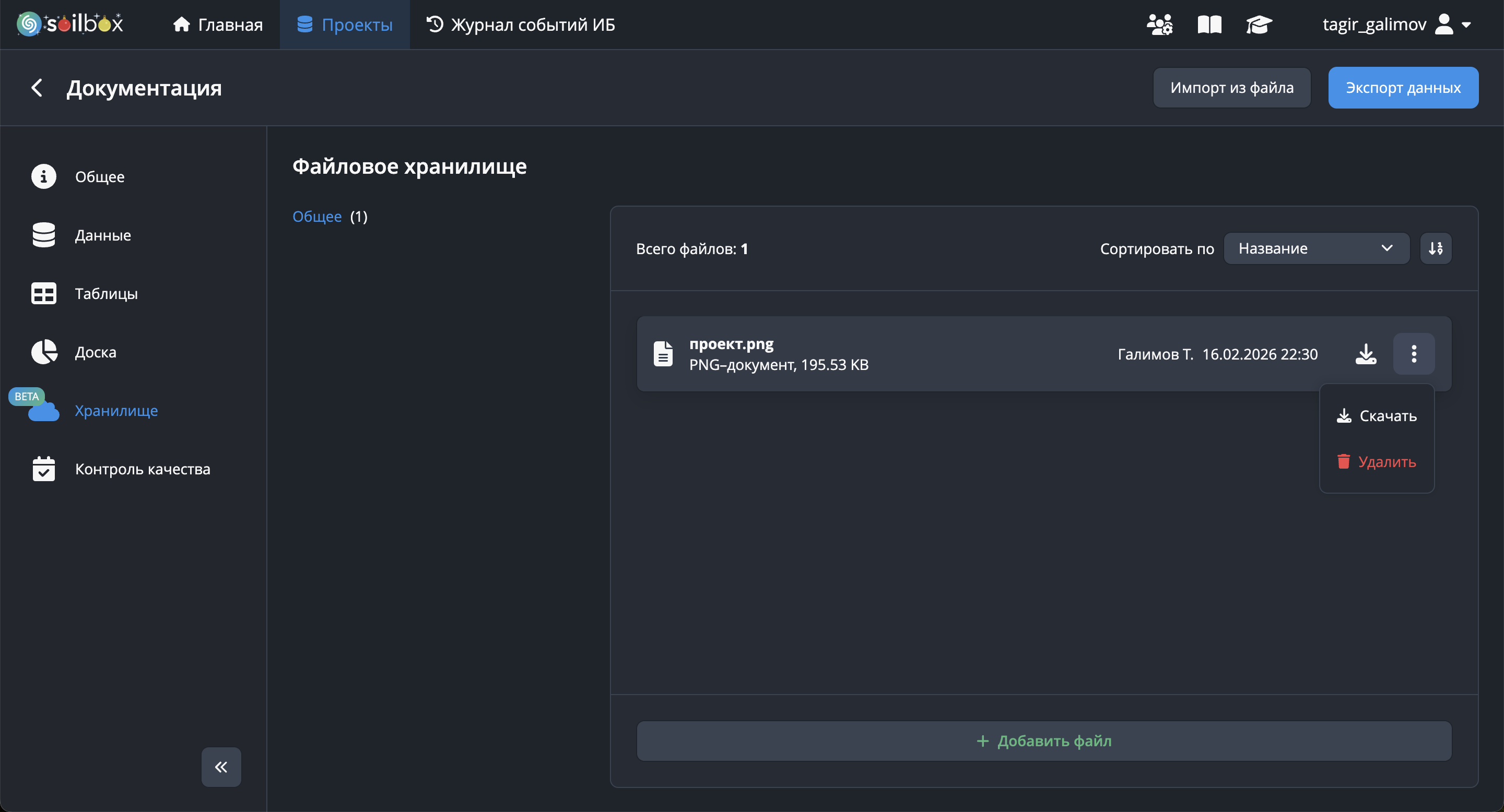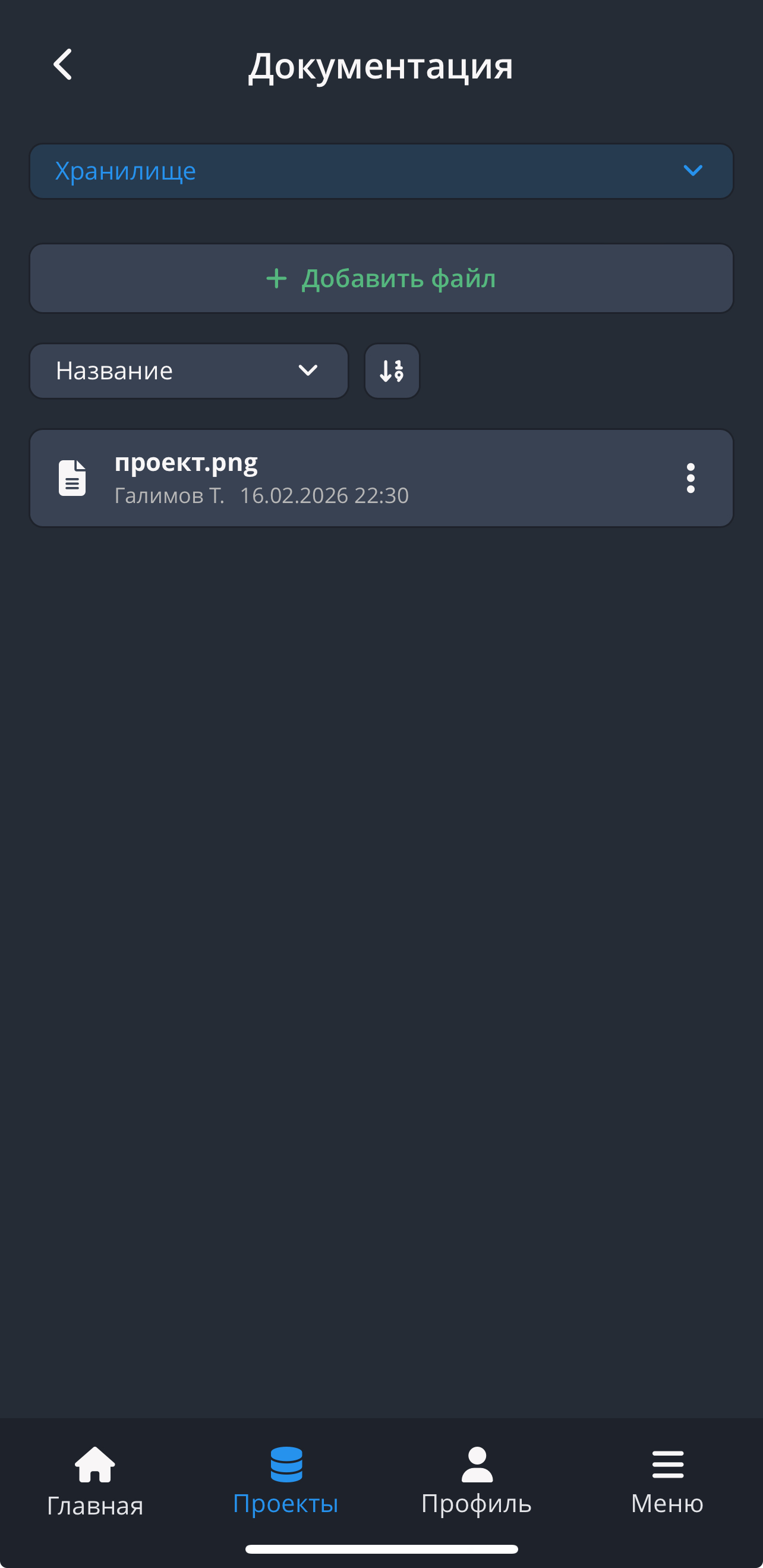 Модуль «Хранилище» предназначен для обмена файлами внутри проекта.