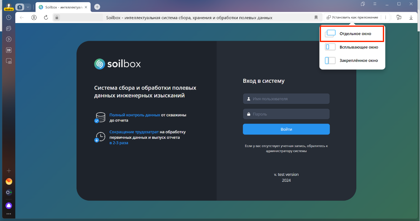 Чтобы установить приложение Soilbox на рабочем столе вашего компьютера с помощью Браузера Яндекс (Yandex), необходимо выполнить следующие шаги: