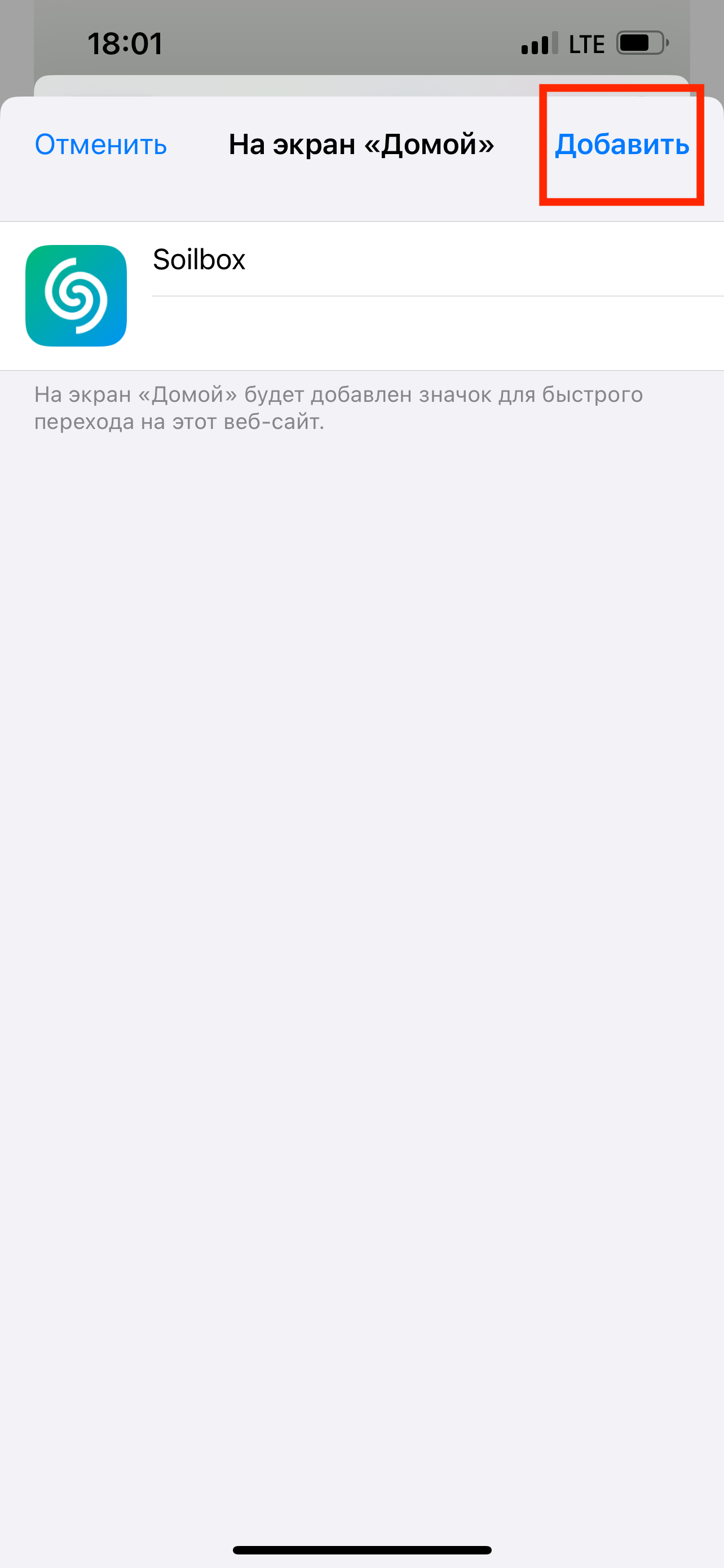 Чтобы установить приложение Soilbox на ваше мобильное устройство iOS с помощью Браузера Safari, необходимо выполнить следующие шаги: