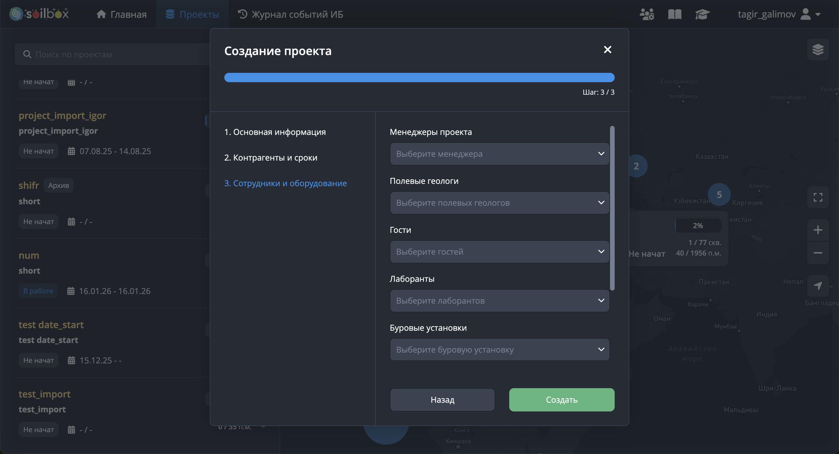 3.1.1 Создание проекта и заполнение основной информации