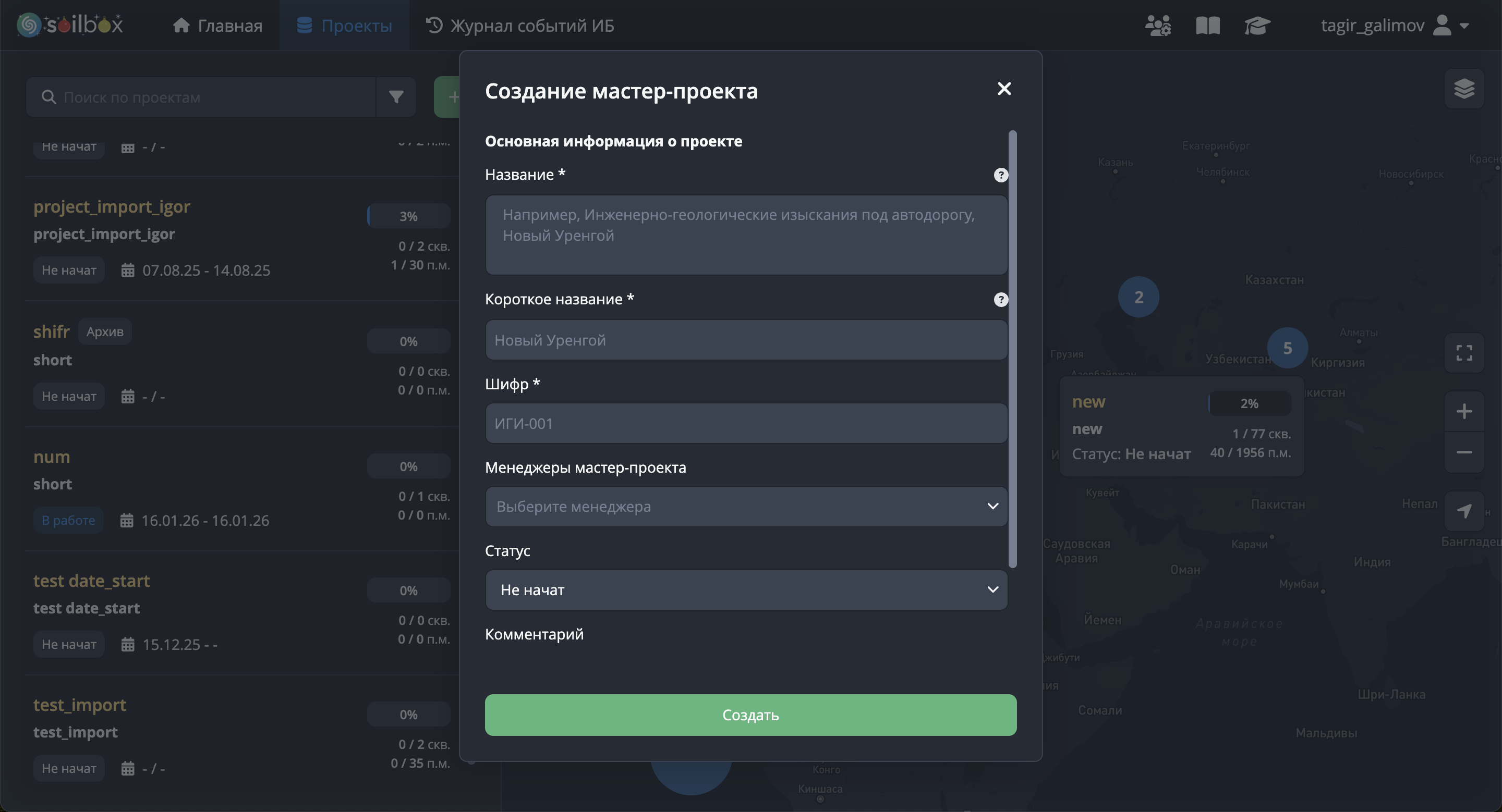 - В мастер-проектах нельзя создавать или импортировать новые сущности (скважины, установки, лабораторные данные и т.д.) — они служат исключительно для просмотра данных и аналитики.