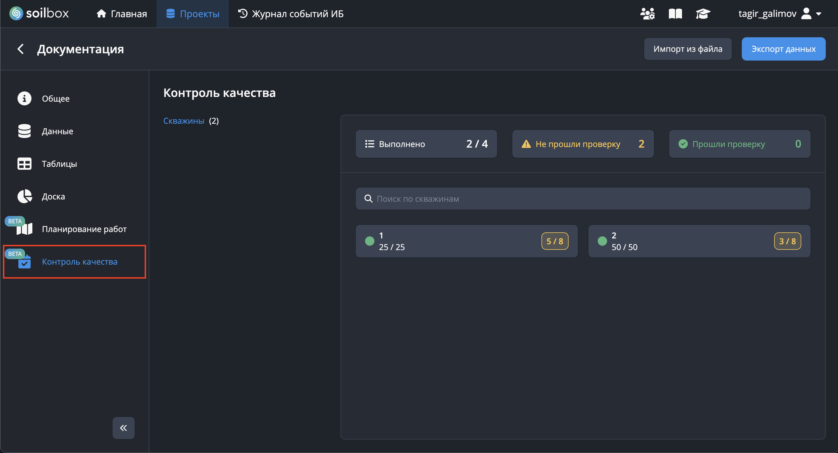 ⚙️ Если проект был создан до появления модуля «Контроль качества», статистика по скважинам может быть ещё не рассчитана.